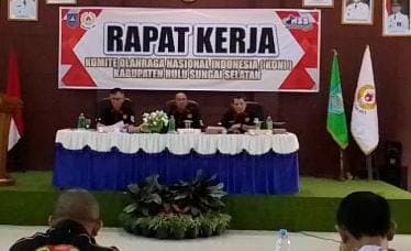Anggota KONI HSS juga sepakat akan menggelar Musyawarah Olahraga Kabupaten Luar Biasa (Musorkablub).