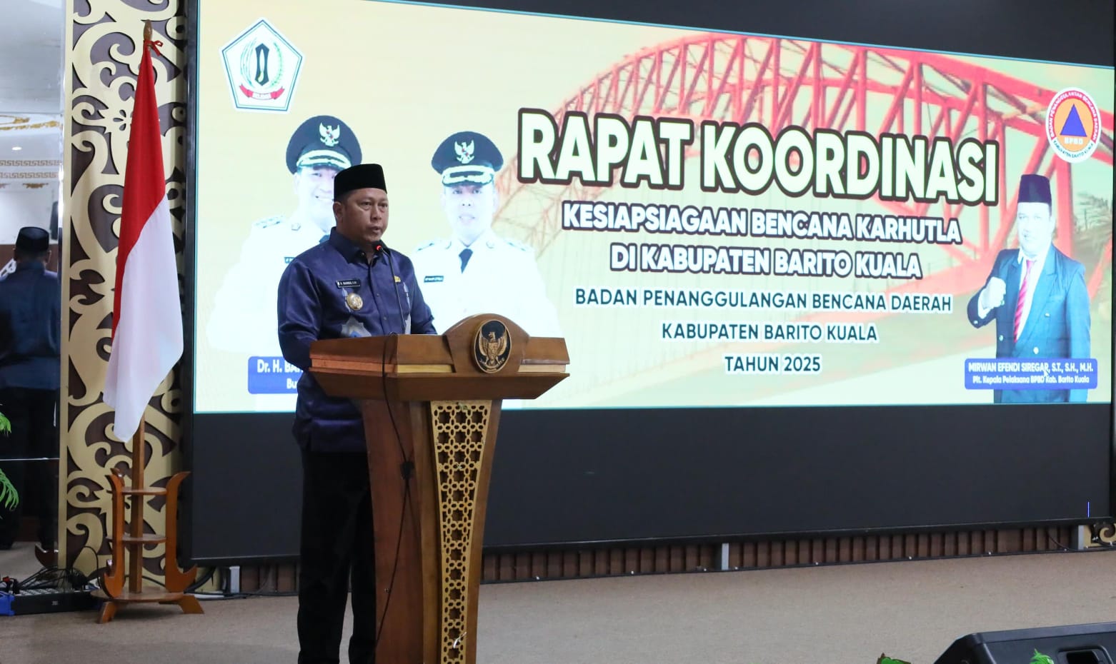 JURNALKALIMANTAN.COM, BARITO KUALA – Pemerintah Kabupaten Barito Kuala melalui Badan Penanggulangan Bencana Daerah (BPBD) menggelar Rapat Koordinasi Kesiapsiagaan Bencana Kebakaran Hutan dan Lahan (Karhutla) di Aula Selidah, Ahad (10/8/25).