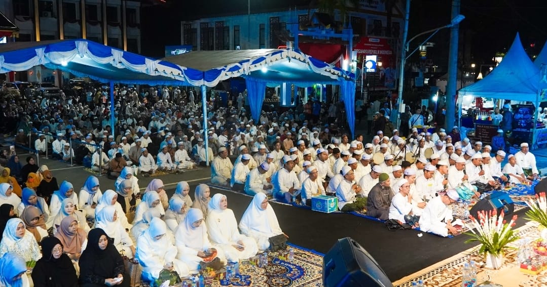 Diawali dengan salat Isya berjamaah, ribuan warga tampak antusias memadati lokasi perayaan maulid. Dalam sambutannya, Wali Kota menyebut peringatan ini sebagai momentum penting bagi jajaran pemerintah dan masyarakat untuk mempertebal keimanan, ketakwaan, serta meneladani akhlak mulia Rasulullah saw.