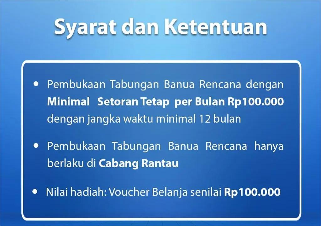 “Kami berharap masyarakat dapat memanfaatkan kesempatan terbatas ini. Selain mendapatkan hadiah langsung, Tabungan Banua Rencana juga membantu nasabah mengelola keuangan secara lebih terarah dan disiplin,” jelasnya.