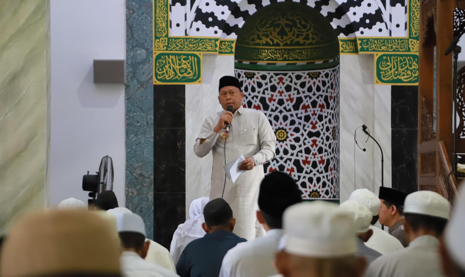 Ia membacakan sambutan tertulis Gubernur Kalimantan Selatan, H. Muhidin, yang menyoroti rasa syukur atas selesainya ibadah Ramadhan dengan penuh keikhlasan.
