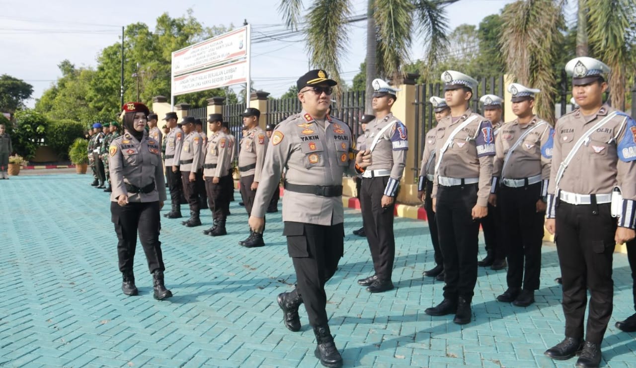 Kapolres HSS saat melakukan pengecekan kesiapan pasukan dalam rangka Operasi Zebra Intan 2025. (Foto : Ist)