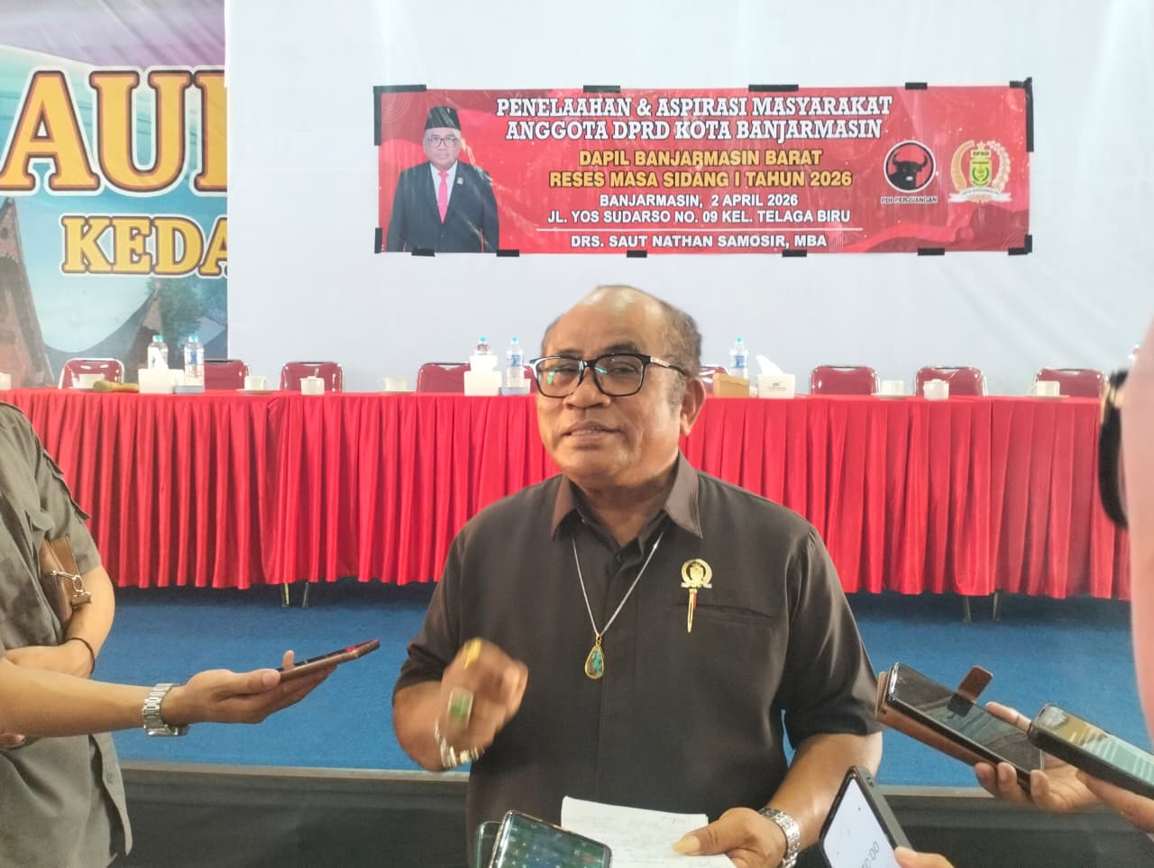 JURNALKALIMANTAN.COM, BANJARMASIN – Anggota Fraksi Partai Demokrasi Indonesia Perjuangan Dewan Perwakilan Rakyat Daerah Kota Banjarmasin dari Daerah Pemilihan Banjarmasin Barat Saut Nathan Samosir, menggelar Penelahaan dan Penyerapan Aspirasi Masyarakat, untuk Reses Masa Sidang I Tahun 2026, Kamis (2/4). Kegiatan ini difokuskan di Kedai 99 Trisakti, kawasan Yos Sudarso.
