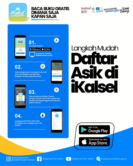 Cukup mengunduh aplikasi iKalsel di Google Play atau App Store, kemudian melakukan pendaftaran, pengguna sudah bisa memilih dan membaca ribuan judul buku digital yang tersedia. Aplikasi ini juga dapat diakses melalui laman ikalsel.moco.co.id.