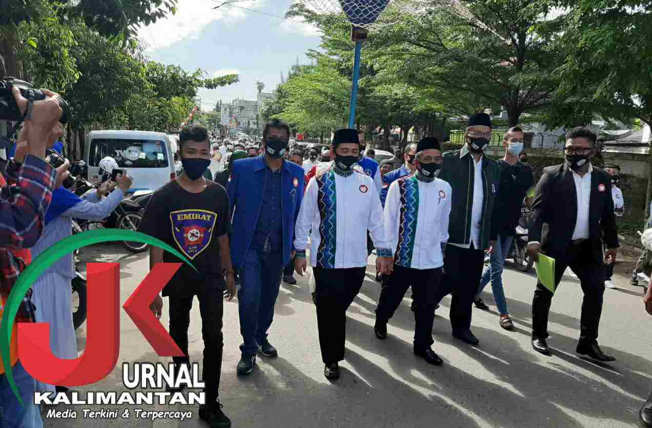 JURNALKALIMANTAN.COM, BANJARMASIN – Mengawali dengan salat hajat, dilanjutkan dengan sujud dan minta restu kepada orang tuanya, yang berlangsung di Masjid Hasanudin Madjedi, Ibnu Sina bersama Arifin Noor, mendatangi Kantor Komisi Pemilihan Umum (KPU) Kota Banjarmasin, dengan diiringi tepukan rebana dan hadrah, untuk mendaftarkan diri sebagai Calon Walikota dan Wakil Walikota Banjarmasin periode 2020–2024, sekitar pukul 09.00 WITA, Jumat (04/09/2020).