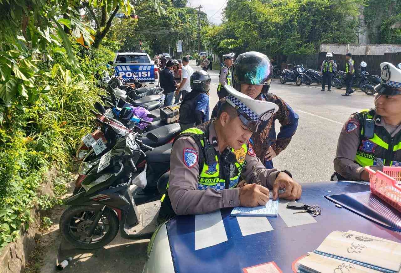 “Untuk tilang manual sudah ada 43 lembar surat tilang yang kita keluarkan, dengan pelanggaran helm sebanyak 25 lembar, melawan arus ada 15 lembar, dan anak di bawah umur sebanyak 3 lembar,” jelas AKP Denny.