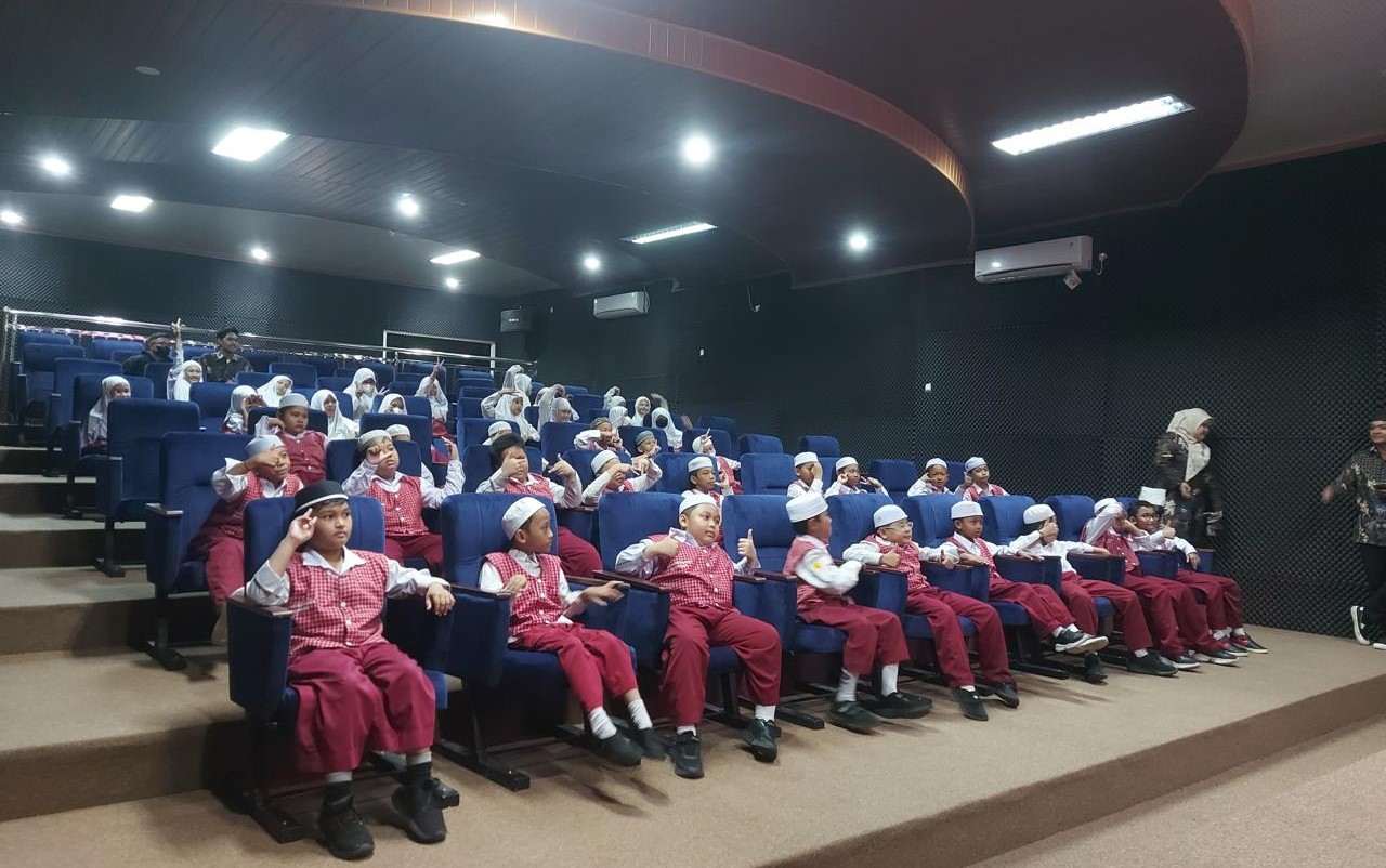 Selain berkunjung ke perpustakaan, mereka juga diajak untuk nonton bareng film Syekh Muhammad Arsyad Al Banjari, di ruang teater milik Dinas Perpustakaan dan Kearsipan (Dispersip) Provinsi Kalsel.