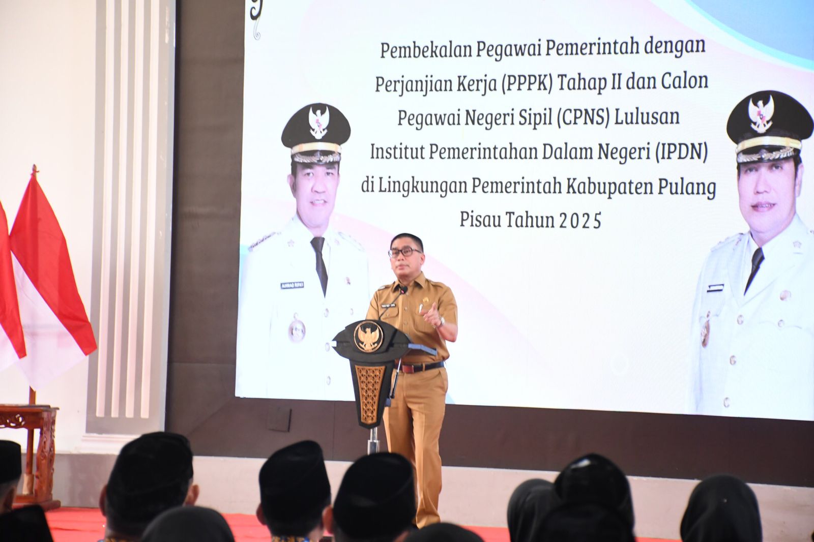 JURNALKALIMANTAN.COM, PULANG PISAU – Bupati Pulang Pisau H. Ahmad Rifa’i melalui Sekretaris Daerah (Sekda) Kabupaten Pulang Pisau, Tony Harisinta, memberikan arahan kepada peserta Pegawai Pemerintah dengan Perjanjian Kerja (PPPK) Tahap II dan Calon Pegawai Negeri Sipil (CPNS) lulusan IPDN di lingkungan Pemkab Pulang Pisau Tahun Anggaran 2025.