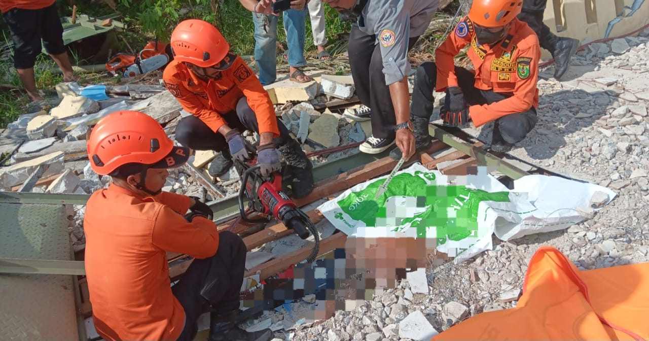 “Korban itu tertindih runtuhan bangunan dengan kondisi luka parah dan sudah meninggal dunia,” ujarnya di lokasi kejadian.