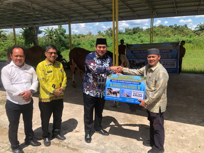 JURNAL KALIMANTAN.COM, PULANG PISAU – Serah terima bantuan kemasyarakatan dari Presiden RI berupa sapi kurban dilaksanakan di halaman Masjid Agung Ar Raudhah, Kamis (5/6/2025).