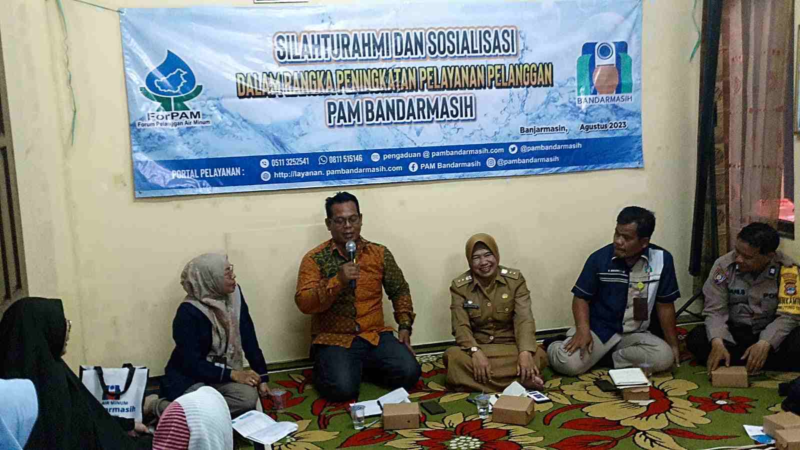 JURNALKALIMANTAN.COM, BANJARMASIN – PT Air Minum (PAM) Bandarmasih bersama Forum Pelanggan Air Minum (Forpam) Kalimantan Selatan kembali melakukan Silaturahmi dan Sosialisasi Peningkatan Pelayanan Prima kepada warga, yang kali ini dilangsungkan di Kantor Lurah Belitung Selatan, Jalan Cendrawasih Gang Kelurahan, Kecamatan Banjarmasin Barat, Selasa (24/10/2023).