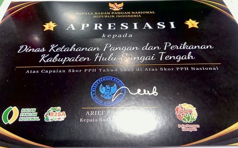 JURNALKALIMANTAN.COM, HULU SUNGAI TENGAH – Pemerintah Kabupaten Hulu Sungai Tengah (HST) mendapatkan apresiasi dari Badan Pangan Nasional (BPN), dalam upaya dan komitmen peningkatan kualitas keanekaragaman konsumsi pangan, melalui capaian skor Pola Pangan Harapan (PPH) Kabupaten/Kota Tahun 2023.