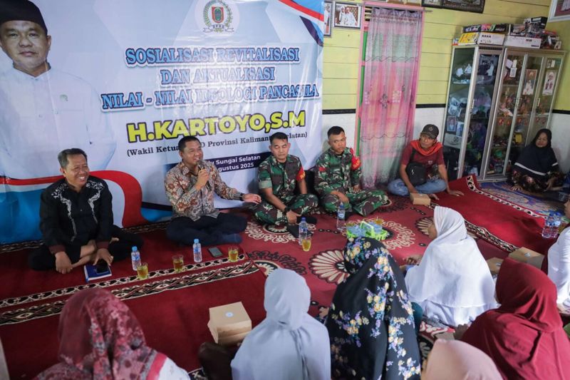 JURNALKALIMANTAN.COM, HULU SUNGAI SELATAN – Wakil Ketua DPRD Provinsi Kalimantan Selatan, H. Kartoyo, S.M., menggelar Sosialisasi Revitalisasi dan Aktualisasi Nilai-nilai Ideologi Pancasila (SOSREV) di Desa Tanah Bangkang, Kecamatan Sungai Raya, Kabupaten Hulu Sungai Selatan, Selasa (19/8/2025).
