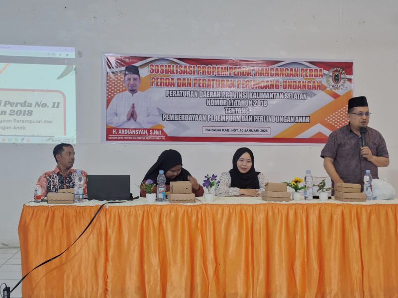 ‎JURNALKALIMANTAN.COM, HULU SUNGAI TENGAH – Anggota DPRD Provinsi Kalimantan Selatan, H. Ardiansyah, S.Hut, menggelar sosialisasi Peraturan Daerah (Perda) Provinsi Kalimantan Selatan Nomor 10 Tahun 2019 tentang Kepemudaan di Barabai, Kabupaten Hulu Sungai Tengah, Jum’at (9/1/2026).