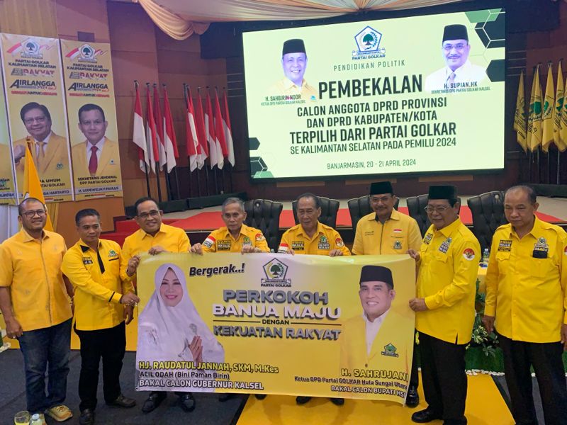 Pernyataan sikap tersebut dipelopori Ketua DPD Partai Golkar Kabupaten Tanah Laut H. Rahimullah dan Ketua DPD Partai Golkar Hulu Sungai Utara (HSU) Sahrujani, pada acara pembekalan yang diikuti seluruh caleg Golkar terpilih se-Kalsel, di kantor Golkar Kalsel, Jalan Lambung Mangkurat Banjarmasin, Sabtu (21/42024) malam.p