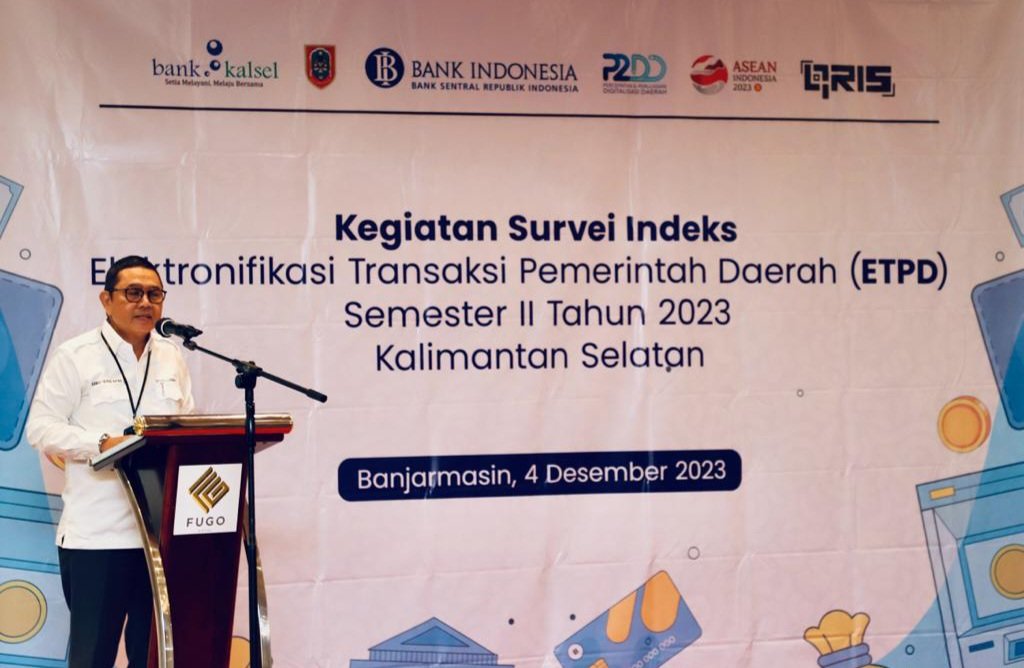 Komitmen tersebut disampaikan oleh Direktur Operasional Bank Kalsel Ahmad Fatrya Putra saat kegiatan Survey Indeks Elektronifikasi Transaksi Pemerintah Daerah (ETPD) Semester II Tahun 2023 Provinsi Kalsel, Senin (4/12/2023) di Hotel Fugo Banjarmasin.