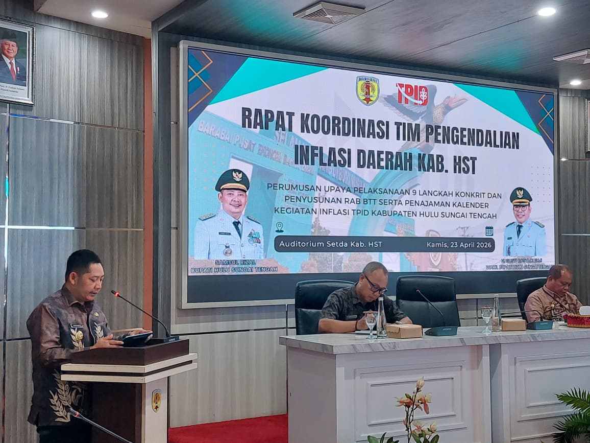 JURNALKALIMANTAN.COM, HULU SUNGAI TENGAH – Pemerintah Kabupaten Hulu Sungai Tengah (HST) menggelar Rapat Koordinasi Tim Pengendalian Inflasi Daerah (TPID) tahun 2026 di Auditorium Setda HST, Kamis (23/4/2026).