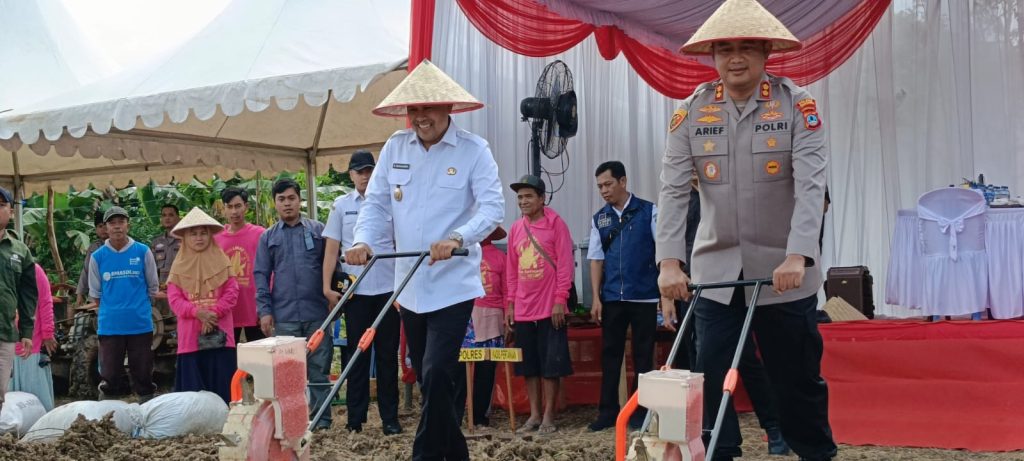 Di Tanah Bumbu, penanaman jagung dipimpin Kapolres Tanbu, AKBP Arief Prasetya, S.I.K., M.Med.Kom, bersama Wakil Bupati Tanah Bumbu, H. Bahsanuddin.