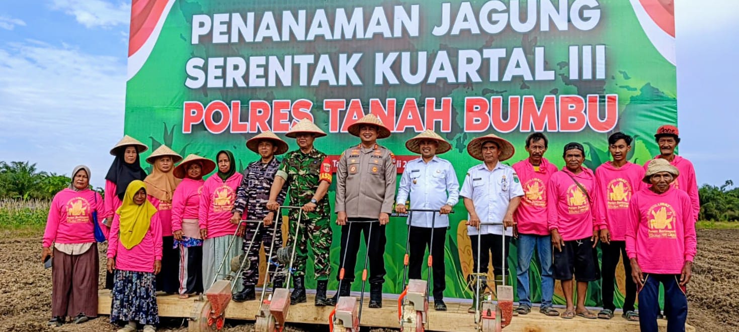JURNALKALIMANTAN.COM, TANAH BUMBU – Kepolisian Resor (Polres) Tanah Bumbu bersama Pemerintah Kabupaten Tanah Bumbu melaksanakan kegiatan penanaman jagung serentak di Desa Sarigadung, Kecamatan Simpang Empat, pada Kuartal III Tahun 2025.
