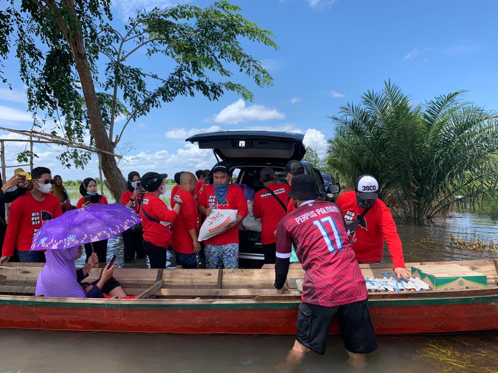Tim Dispersip Kalsel pun melanjutkan distribusi bantuan berupa kebutuhan bahan pokok dan pakaian layak pakai ini dengan menggunakan kelotok, yang dijemput langsung sekretaris desa (sekdes) setempat, Siti Khomairo Sani.