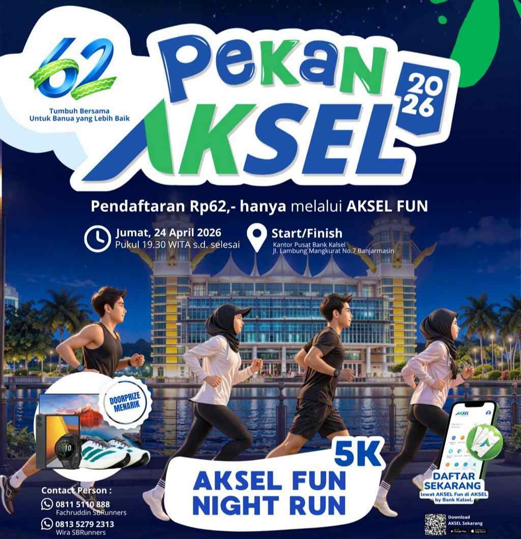 JURNALKALIMANTAN.COM, BANJARMASIN – Bank Kalsel kembali meramaikan Pekan AKSEL 2026 dengan menghadirkan kegiatan AKSEL Fun Night Run yang dikemas praktis dan sepenuhnya digital.