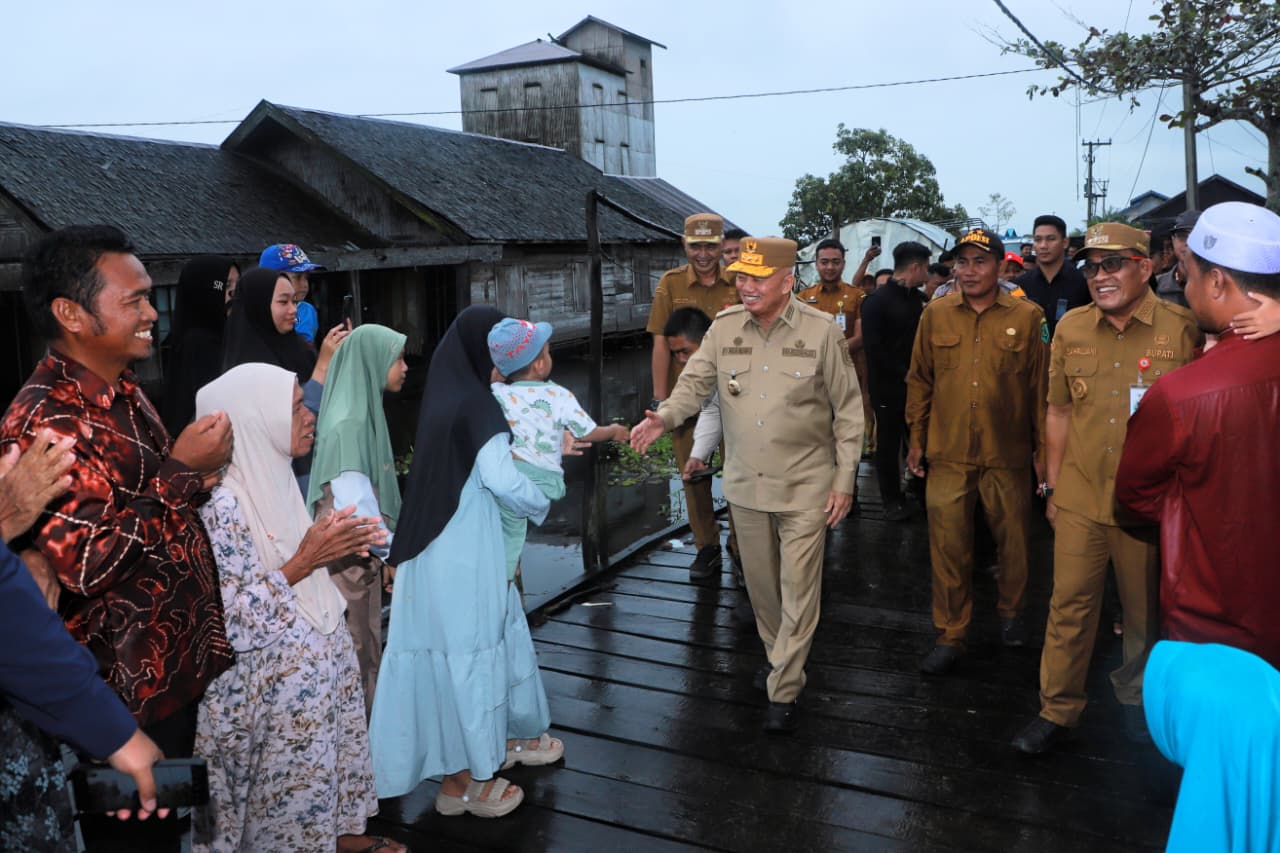 Di hadapan warga yang berkumpul di halaman sekolah dasar, Gubernur H. Muhidin mengaku bersyukur dapat hadir langsung dan melihat kondisi masyarakat di lapangan.