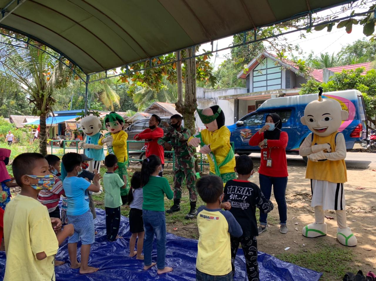 Tim Pusling menghibur anak-anak di lokasi TMMD Kabupaten Tabalong