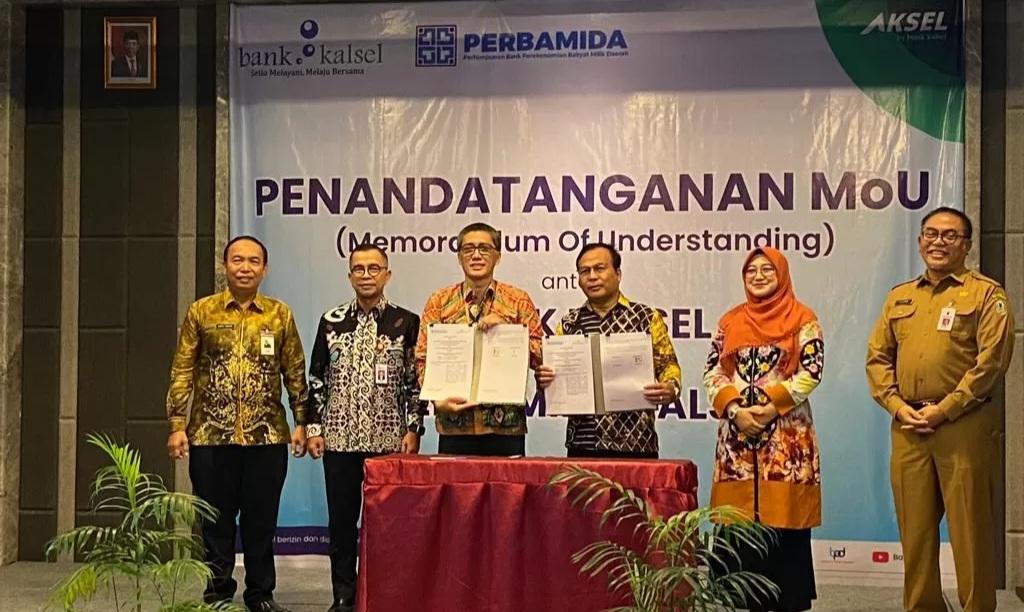 MoU dilakukan langsung Dirut Bank Kalsel Fachrudin dan Ketua Perbamida Kalsel Ketua DPW Perbamida Kalimantan Hipka Mubadi disaksikan langsung Sekretaris Daerah yang diwakili asisten pemerintahan dan kesejahteraan Rakyat Nurul Fajar Desira, Kepala OJK Kalsel Darmansyah serta Ketua Perbamida Pusat Sofia Nurkrisnajati Atmaja ST MM di Hotel Harper, Selasa (12/12/2023).