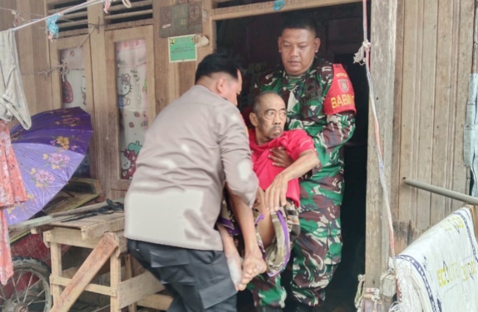 TNI-Polri Sigap Evakuasi lansia Derita Asma ke RSUD H Damanhuri Barabai