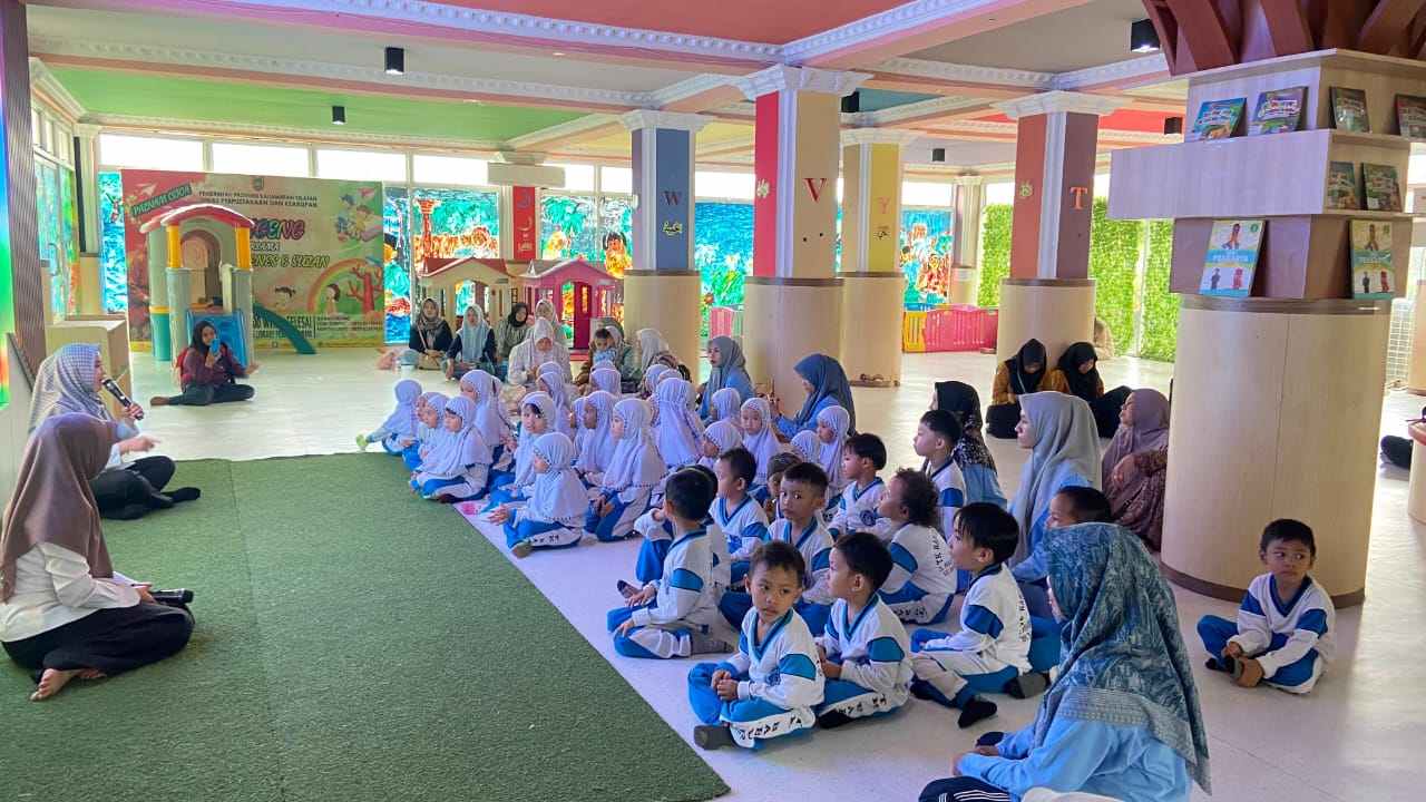 Sejak tiba, rombongan disambut hangat oleh petugas perpustakaan. Anak-anak tampak ceria mengikuti berbagai layanan yang tersedia, mulai dari permainan edukatif, menonton film pembelajaran, hingga membaca buku di ruangan Kids Library yang memang dirancang khusus untuk anak-anak.