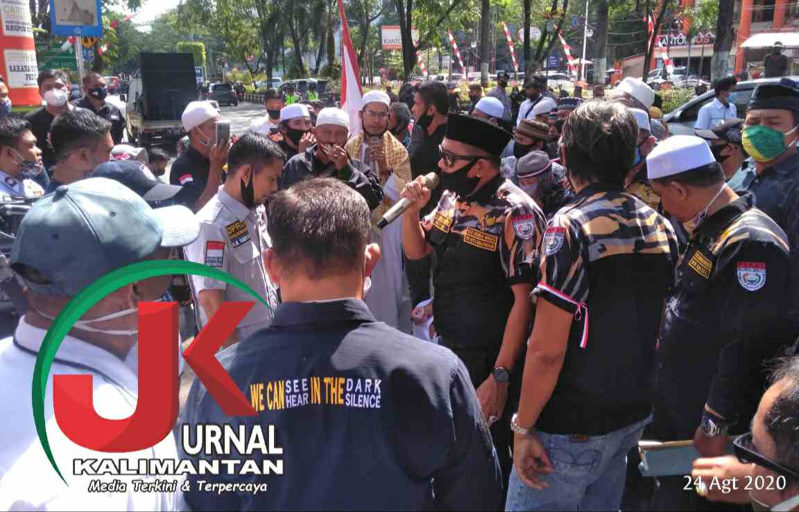 JURNALKALIMANTAN.COM, BANJARMASIN – Massa Organisasi Masyarakat (Ormas) Pembela Kesatuan Tanah Air Indonesia Bersatu (Pekat IB), mendatangi Kantor Dewan Perwakilan Rakyat Daerah (DPRD) Kota Banjarmasin, di Jalan Lambung Mangkurat, guna meminta klarifikasi salah satu wakil rakyat dari Fraksi Partai Golongan Karya, Sukhrowardi, yang diduga menyamakan tata tertib (tatib) dewan dengan Kitab Suci Alquran.