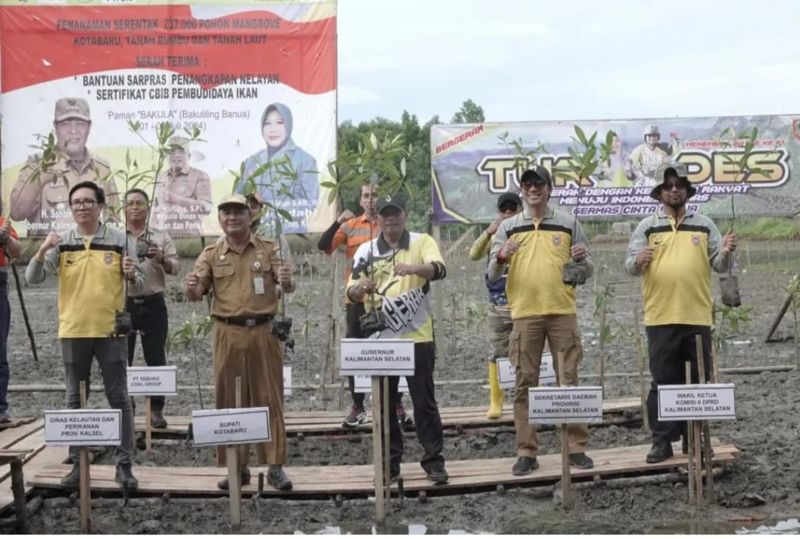 Kali ini, Paman Birin menggerakkan penanaman serentak 237.000 pohon mangrove, penyerahan bantuan sarana dan prasarana penangkapan nelayan, serta penyerahan sertifikat Cara Budi Daya Ikan yang Baik (CBIB), bagi pembudidayaan ikan di Desa Sigam, Kecamatan Pulau Laut Sigam, Kabupaten Kotabaru, Selasa (2/7) siang.