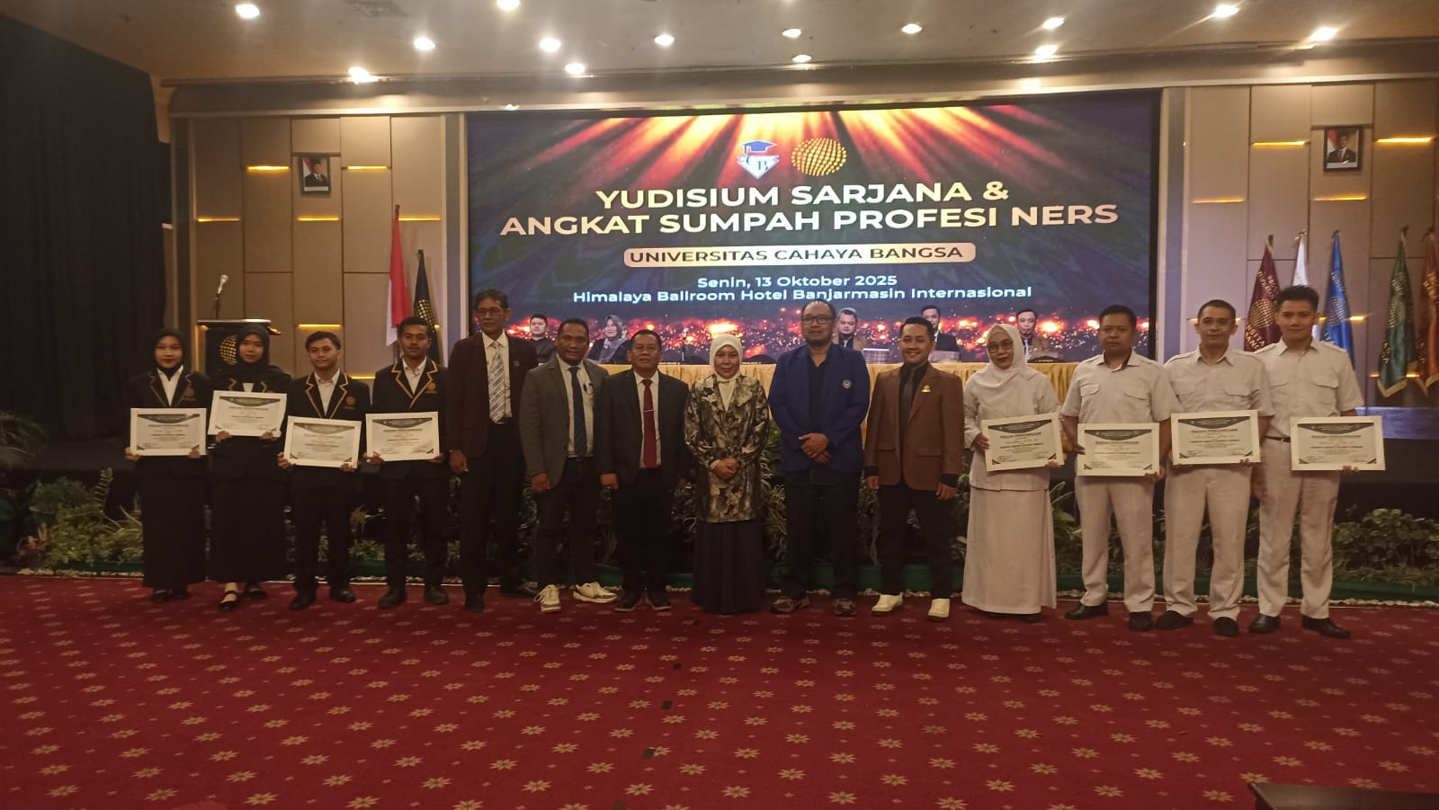 JURNALKALIMANTAN.COM, BANJARMASIN – Universitas Cahaya Bangsa (UCB) sukses menggelar Yudisium Sarjana dan Angkat Sumpah Profesi Ners di Himalaya Ballroom Hotel Banjarmasin Internasional, Senin (13/10/2025).