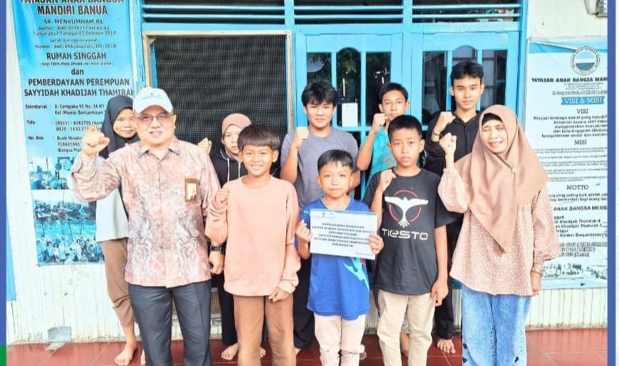 Oleh karenanya Bank Kalsel melalui Unit Pengumpul Zakat (UPZ) turut berpartisipasi dalam membantu kegiatan dimaksud dengan memberikan bantuan dana pendidikan kepada 26 anak yatim piatu dan dhuafa di Rumah Singgah Sayyidah Khadijah Thahirah II, Yayasan Anak Bangsa Mandiri Banua Banjarmasin.