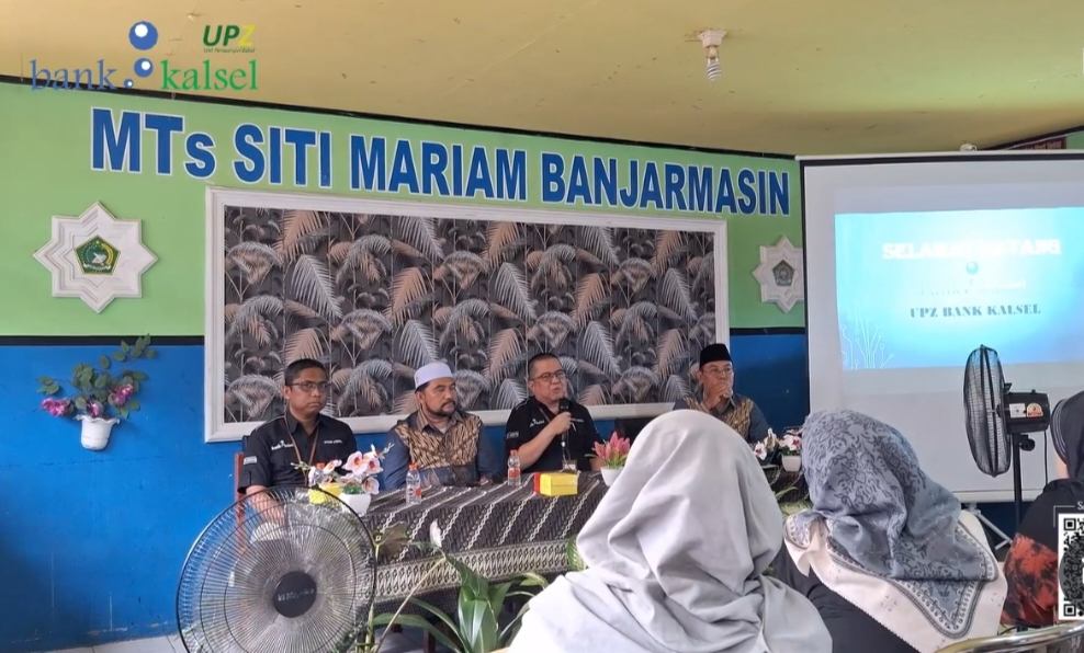 Penyerahan bantuan tersebut dilakukan secara simbolis oleh Direktur UPZ Bank Kalsel H. M. Fajri Muhtadi beserta Staf UPZ Bank Kalsel kepada Kepala Sekolah MTs Siti Mariam Banjarmasin Taufik Rahman, M.Pd.I dan Ustadz Sufian Al-Banjari.