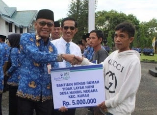 “Berdasarkan hal tersebut UPZ Bank Kalsel memberikan bantuan dana kepada Hairul Sidik untuk merehab rumahnya tersebut yang tidak layak huni,” ujarnya saat penyerahan bantuan bedah rumah rumah untuk Hairul Sidik yang disaksikan langsung oleh Sekda Kabupaten Tala Dahnial Kipli belum lama tadi.