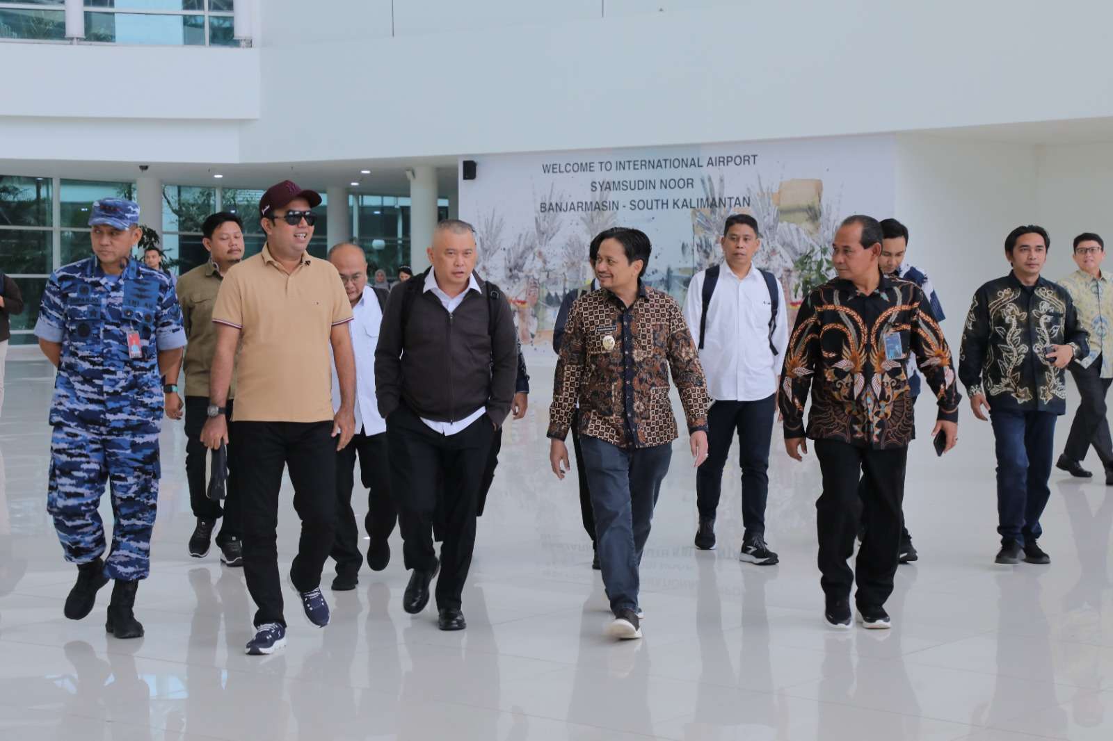 JURNALKALIMANTAN.COM, BANJARBARU — Wakil Gubernur Kalimantan Selatan, Hasnuryadi Sulaiman, menyambut kedatangan Menteri Perhubungan RI, Dudy Purwagandhi, bersama Anggota Komisi IX DPR RI di Bandara Internasional Syamsuddin Noor, Kota Banjarbaru, Kamis (25/9/2025) pagi.