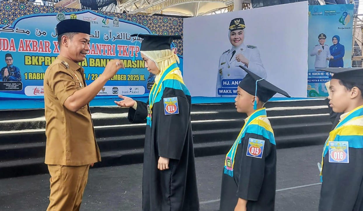 JURNALKALIMANTAN.COM, BANJARMASIN – Pemerintah Kota Banjarmasin bersama Dewan Pimpinan Daerah (DPD) Badan Komunikasi Pemuda dan Remaja Masjid Indonesia (BKPRMI) menggelar Wisuda Akbar ke-37, yang berlangsung khidmat di halaman balai kota, Jalan R.E. Martadinata, Selasa (23/9/2025).