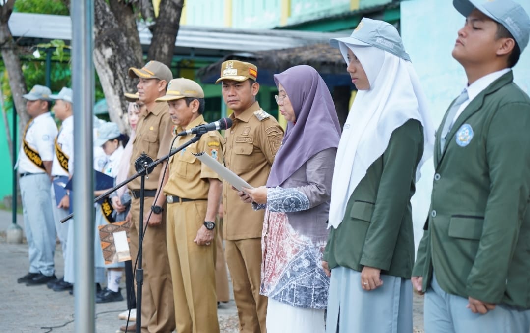Wali Kota Yamin secara simbolis menyerahkan putranya, Muhammad Zaidur Rizki, kepada pihak sekolah, di hadapan ratusan siswa baru yang memulai masa MPLS.