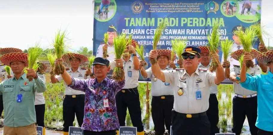 JURNALKALIMANTAN.COM, TANAH LAUT – Rumah Tahanan Negara (Rutan) Kelas IIB Pelaihari bersama Balai Penyuluhan Pertanian (BPP) Kabupaten Tanah Laut, menggelar penanaman padi perdana di lahan Cetak Sawah Rakyat (CSR) seluas 20 hektare, Kamis (2/4/2026).